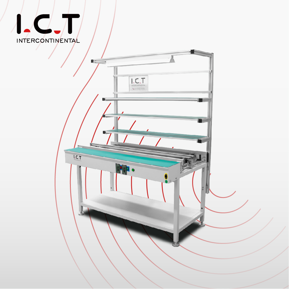 ИЦТ нуди више од десет типова транспортера тако да свака фабрика ради савршено. Стандардни спојни транспортери једноставно преносе даске. Инспекцијске станице додају јака светла. Телескопске јединице и јединице за одбацивање одговарају посебним распоредима. Напредни СМТ ПЦБ транспортер за заптивање долази са ручним поклопцем, аутоматским поклопцем за подизање, једноструком или двоструком верзијом, плус опциони ваздушни туш или јонизатор за ултра чиста окружења. Доступни су и модели ланца и пуфера за тешке услове рада. Свака линија за склапање транспортних плоча може се у потпуности прилагодити по дужини, висини, типу поклопца и паметним функцијама како би одговарала вашим тачним захтевима за чистоћом.