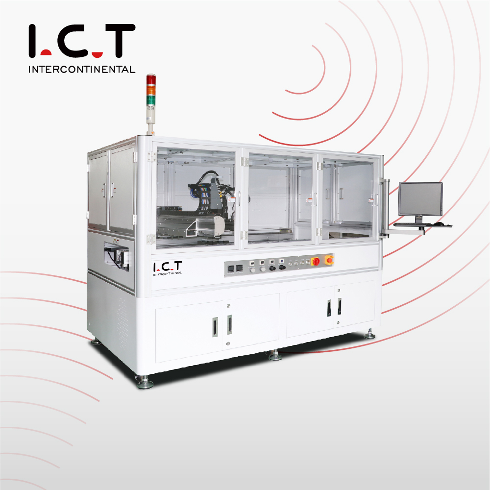 ИЦТ систем издавања има значајну снагу у погледу трошкова. Пошто је поуздан, издржљив и концизно дизајниран, може се применити на ПЦБ и основне материјале различитих спецификација. УФД оперативни софтвер осигурава стабилност и поузданост система. Систем је дизајниран за заптивање чипова, монтажу ПЦБ-а, дозирање СМТ црвеног лепка, лед сочива и медицинске производе. Са подесивом ширином стазе, може се применити на више производа.