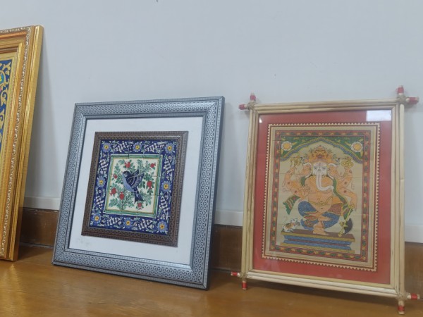 Поносно изложени у нашој канцеларији, ови поклони чине живописну културну галерију. Међу њима су лепо израђени украсни тањири и уметничка дела која одражавају снажне утицаје исламских уметничких традиција. Сложени геометријски обрасци, цветни мотиви и калиграфски елементи указују на порекло из региона као што су Централна Азија и Блиски исток. Једна упечатљива плоча садржи детаљне орнаменталне дизајне који се обично повезују са Узбекистаном, познатим по својој богатој историји дуж Пута свиле. Чини се да још једно уоквирено уметничко дело укључује традиционални исламски језик дизајна - симетрију, прецизност и дубок осећај хармоније.